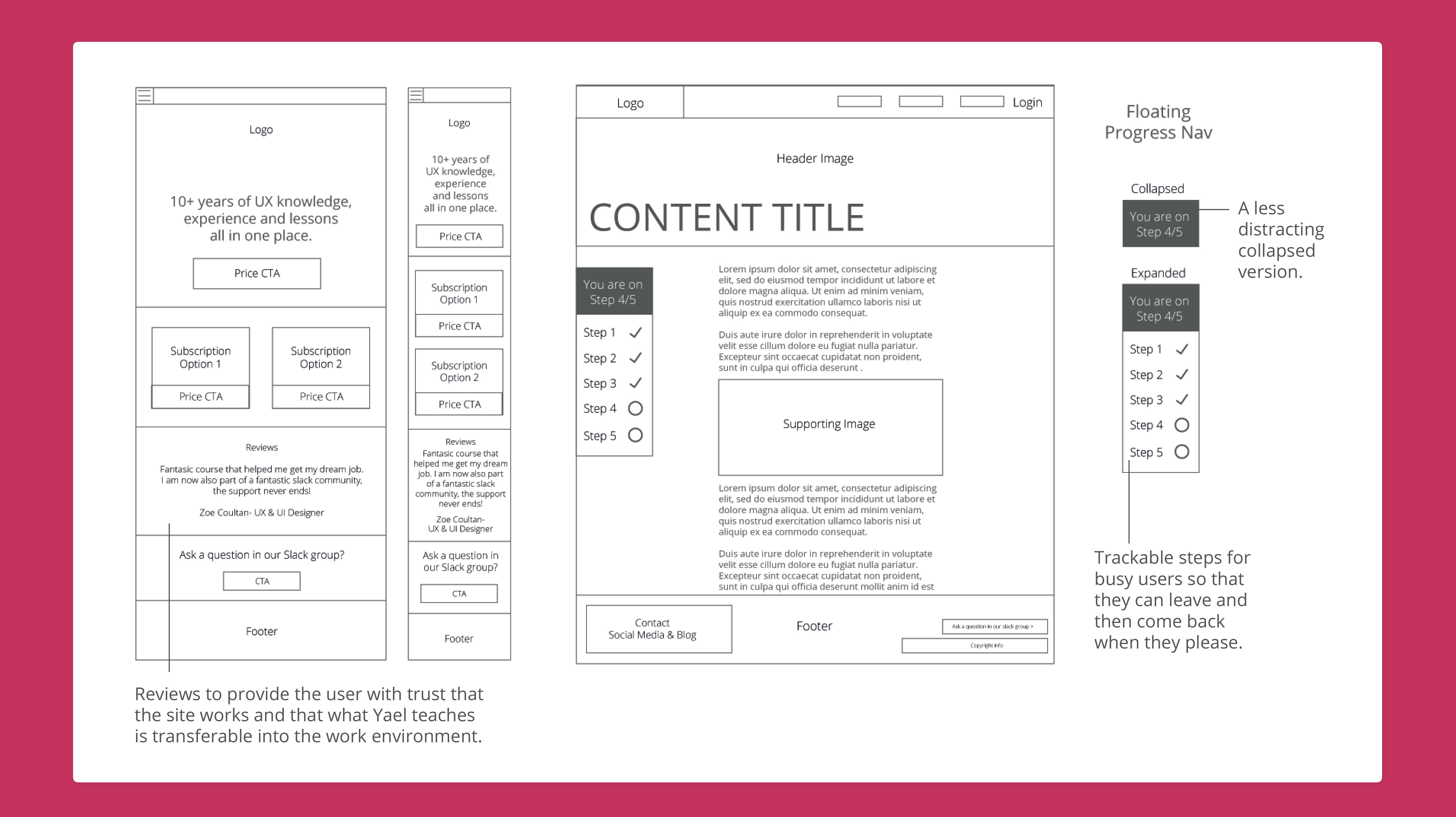 • Yael loved the designs and took both my research findings and wireframes forward to help with the creation of her UX site.